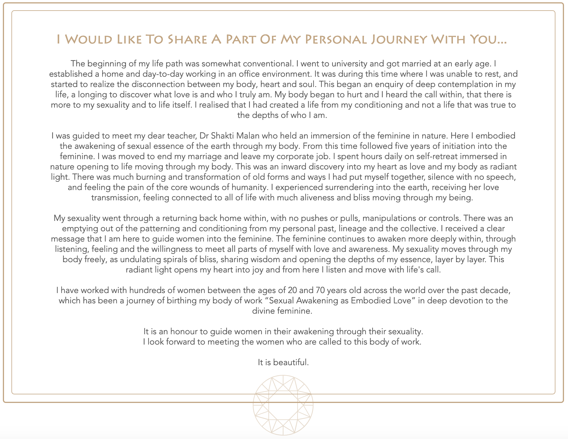 She is called to shine her unique feminine essence into her relationships, creations and the world.